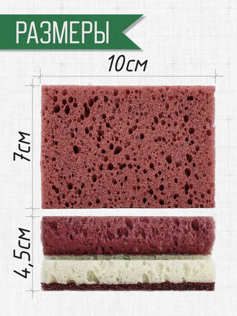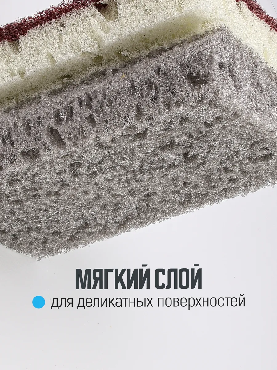 + Надежная склейка слоев - губка не распадается, не крошится, сохраняет форму.